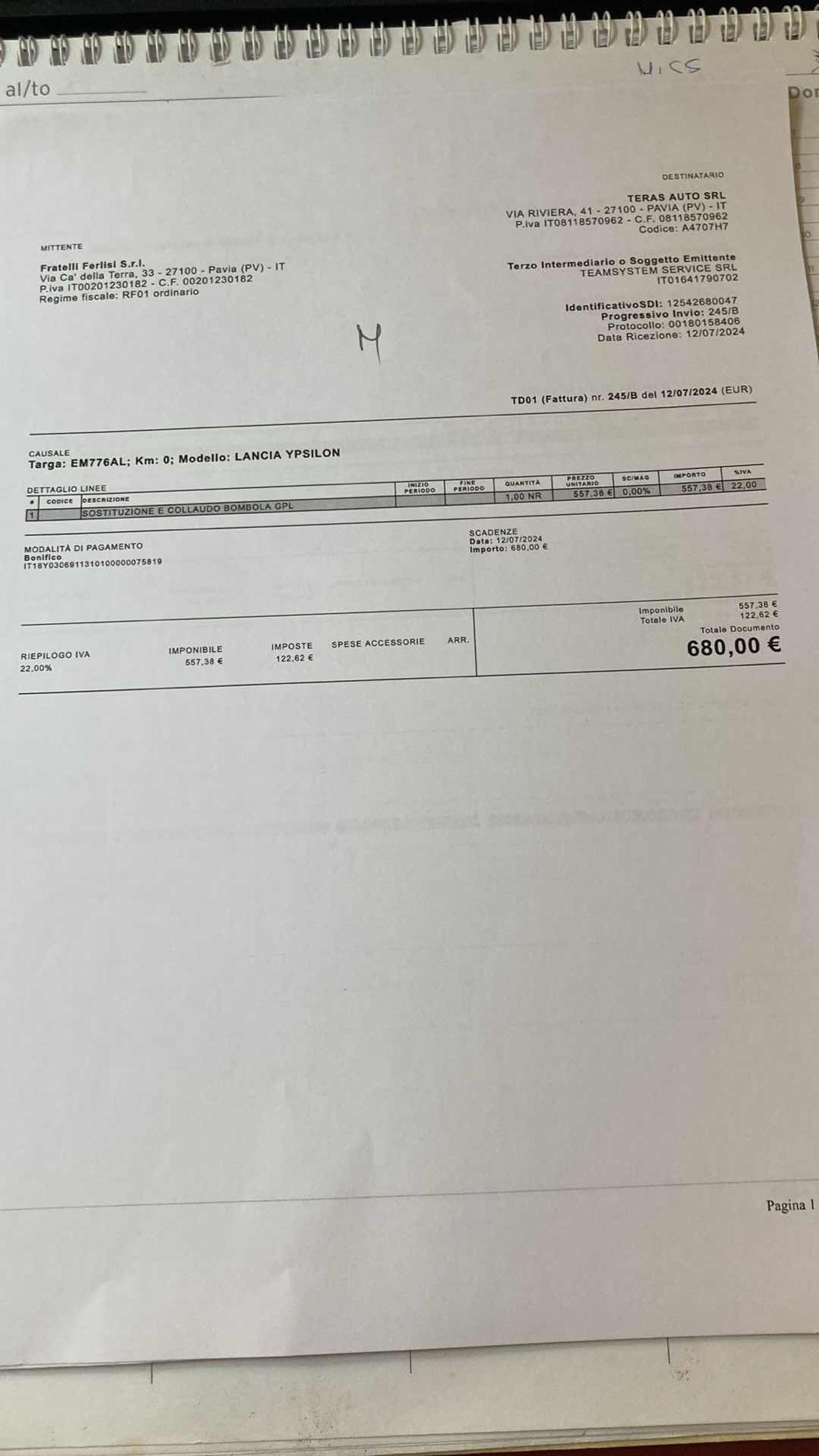 Il titolare del trattamento è Teras Auto Srl con sede in Via Riviera, 41, 27100 Pavia (PV)